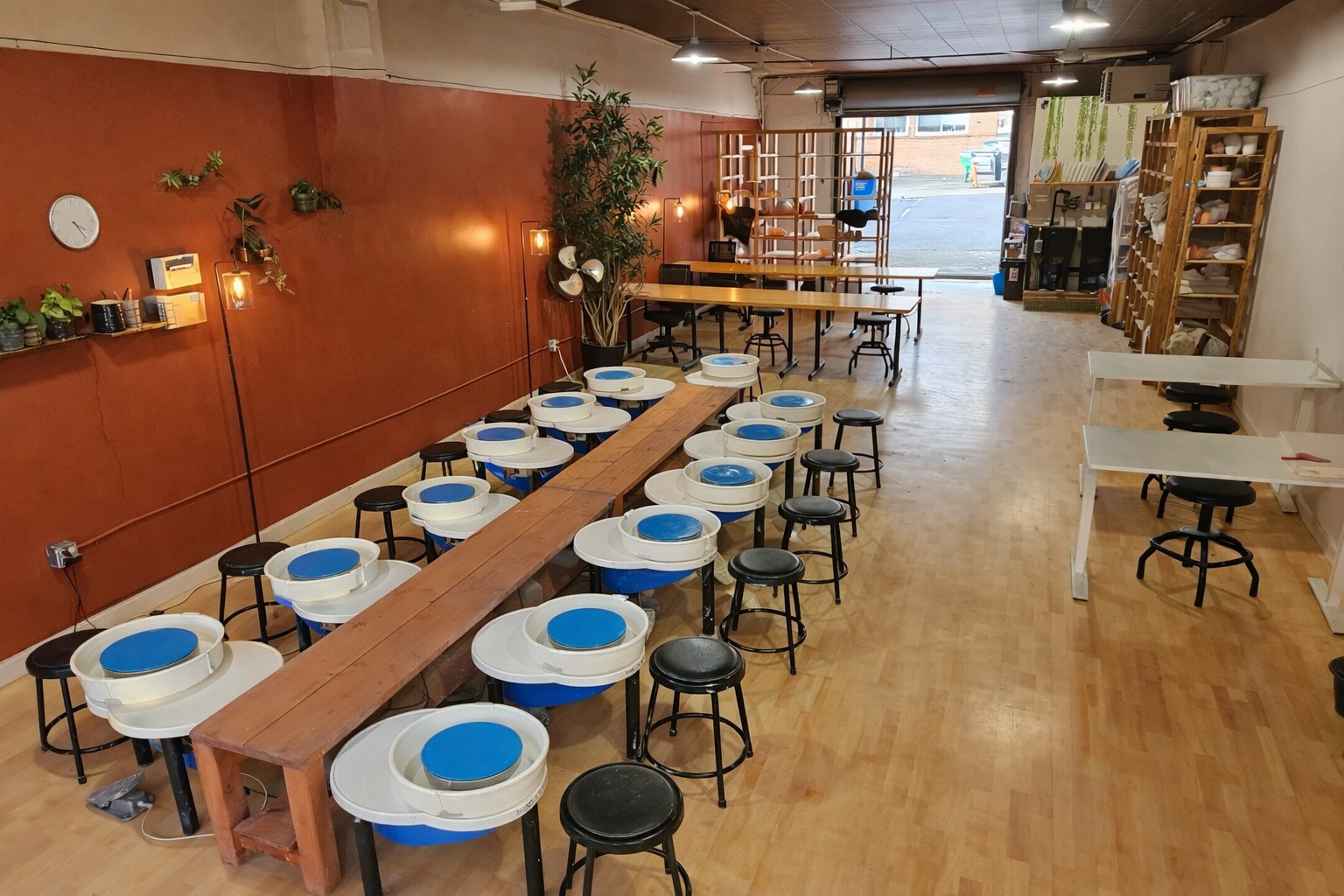 All memberships include 24/7 access, so you can work when inspiration strikes, day or night. The studio is equipped with Shimpo wheels, large worktables, high ceilings, and plenty of natural light to support your practice at any hour.